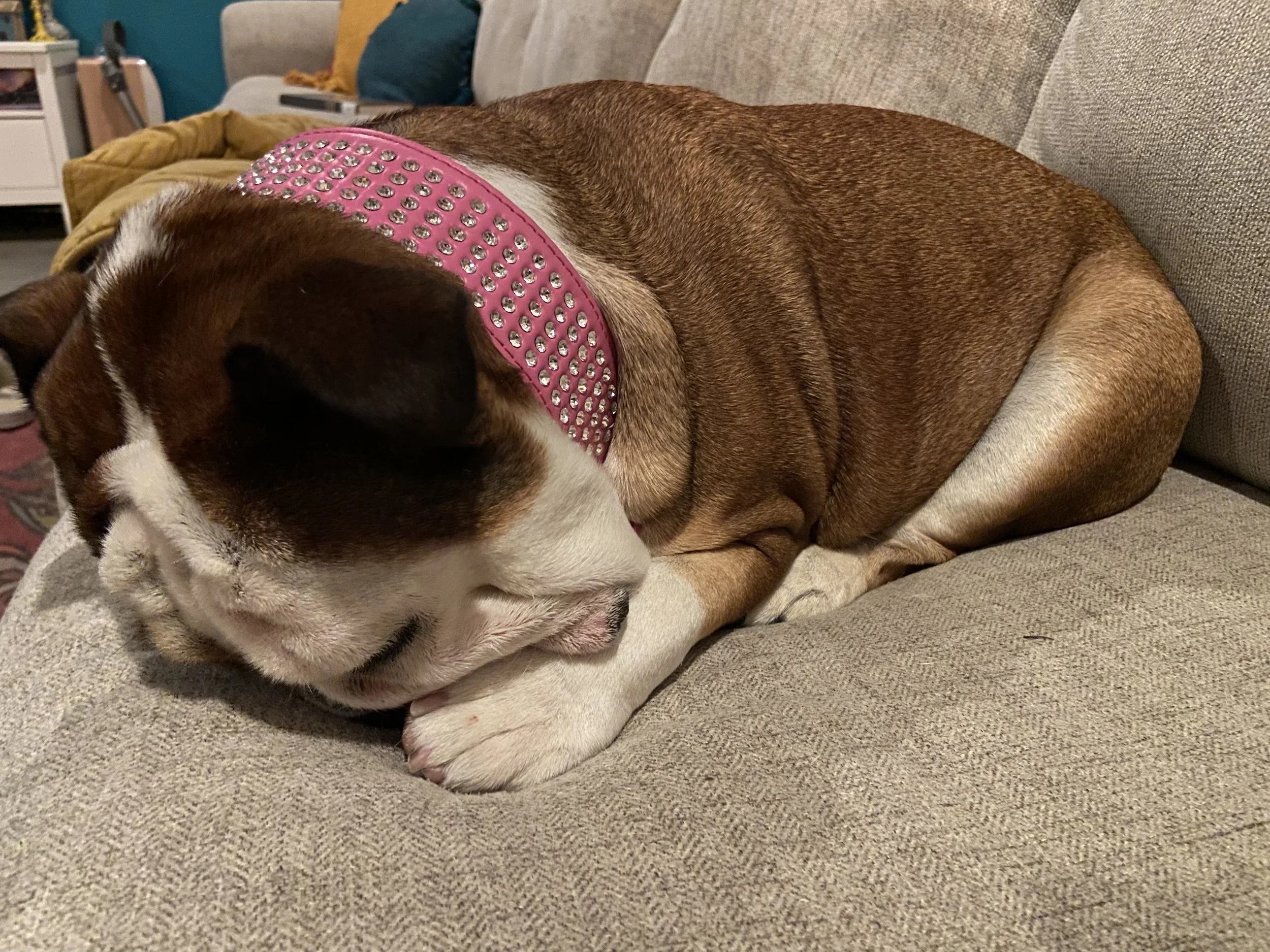 On the extrovert note, Sugar absolutely loves it when we host people in our home. She changes from a lazy couch potato to a high-energy, vocal pup the second the doorbell rings. After barrelling our guests over with unsolicited affection, Sugar then becomes the loudest thing in the room, dominating the conversation. This is her vibe until the last guest has left, after which she collapses on the couch and shuts out everyone and everything, as evidenced by her faceplant. For me, hosting people is the same as drinking five cups of coffee; it energizes me, and like Sugar, I may show a little too much excitement for our more introverted guests. But just like the crash that comes from over-caffeinating, I suddenly hit a wall that tells me I am done, and I have to force myself not to turn the lights off on our guests before they’ve even reached the door.